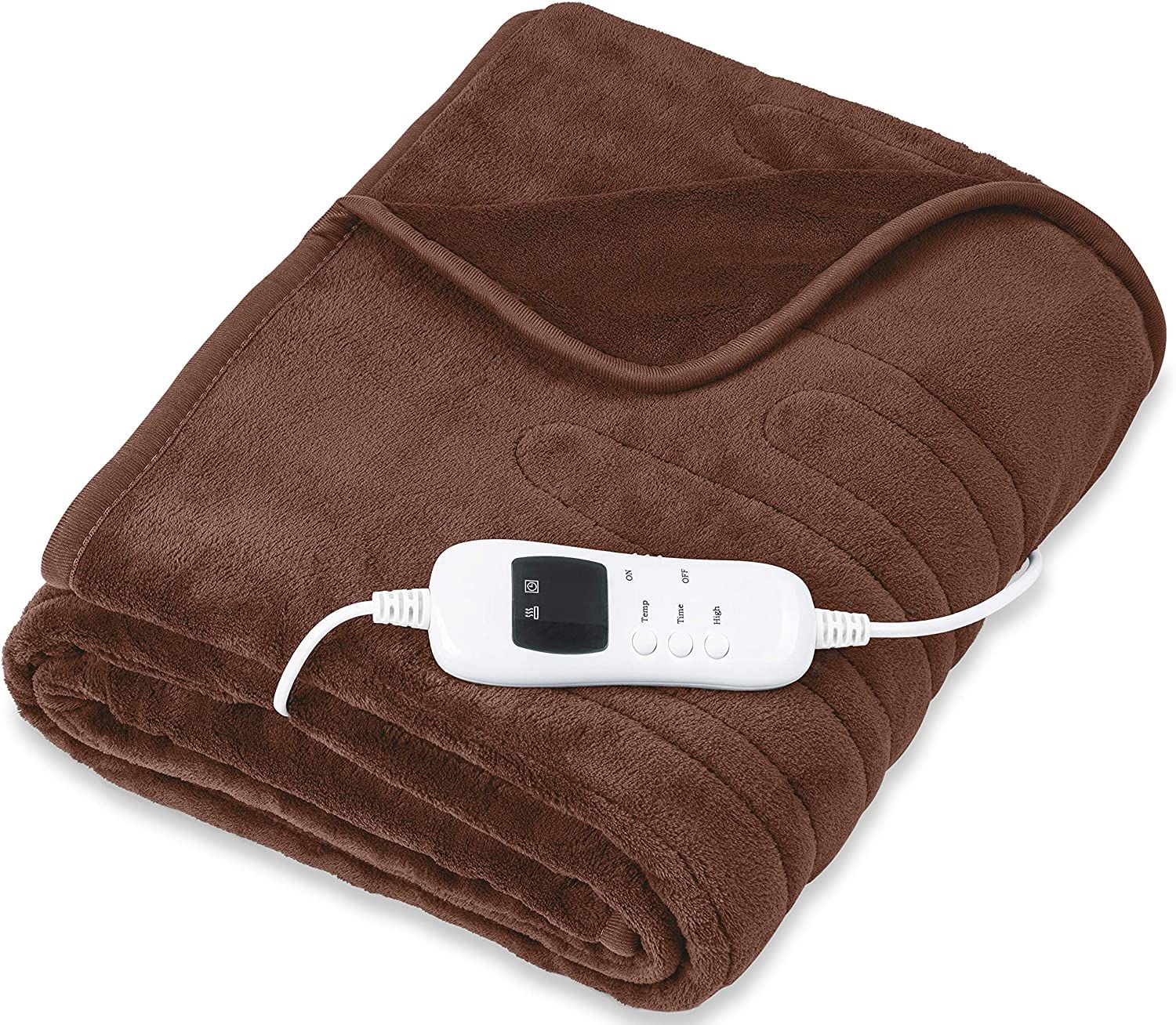 sinnlein Heizdecke elektrische Wärmedecke 180 x 130 cm braun mit Abschaltautomatik und Timer abwaschbar
