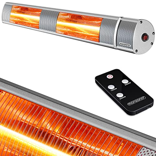 Der Monzana Infrarot Heizstrahler MZH3000 bietet eine effiziente Wärmequelle für den Innen- und Außenbereich. Mit einer Leistung von 3000W und drei einstellbaren Heizstufen sorgt er schnell für angenehme Temperaturen, während die Fernbedienung und der Neigungswinkel von 90° die Bedienung erleichtern.