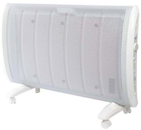 Geräuschlose Strahlungswärme mit Frostschutzfunktion und mobiler Nutzung durch integrierte Rollen.