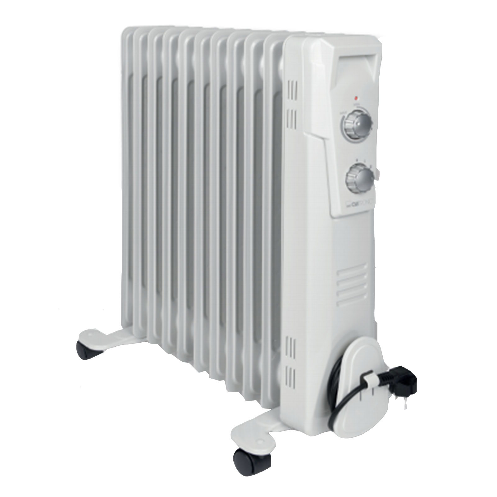 Mobiler Ölradiator mit stufenlosem Thermostat und platzsparender Slimline-Bauweise.