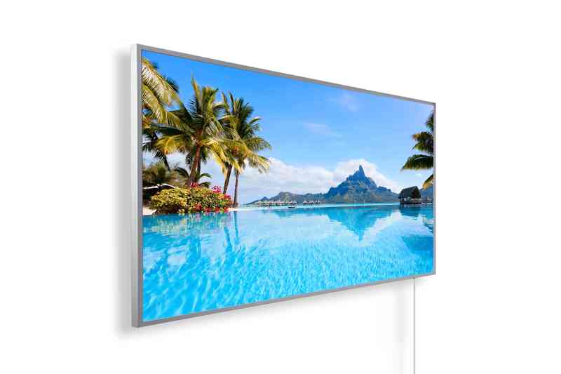 Die Könighaus Infrarotheizung Panorama-Serie 1200W Bora Bora Insel bietet angenehme Strahlungswärme sowie ein schönes und hochwertiges Design. Dank der mitgelieferten Schablonen gestaltet sich die Installation einfach und unkompliziert. Die Heizleistung ist gut, sodass für eine behagliche Wärme gesorgt ist.