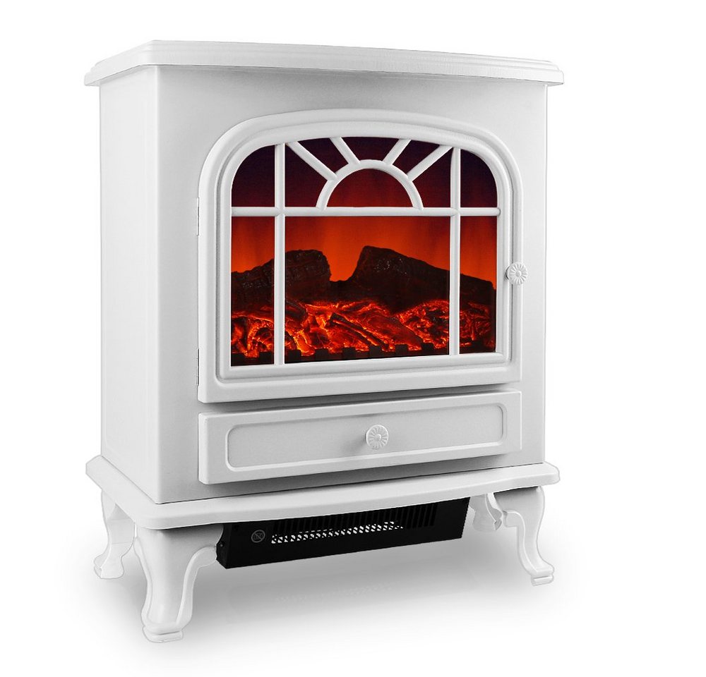 Deuba Heizlüfter2000 W, Elektrischer Kamin mit LED Kaminfeuer Effekt, weiß-grau