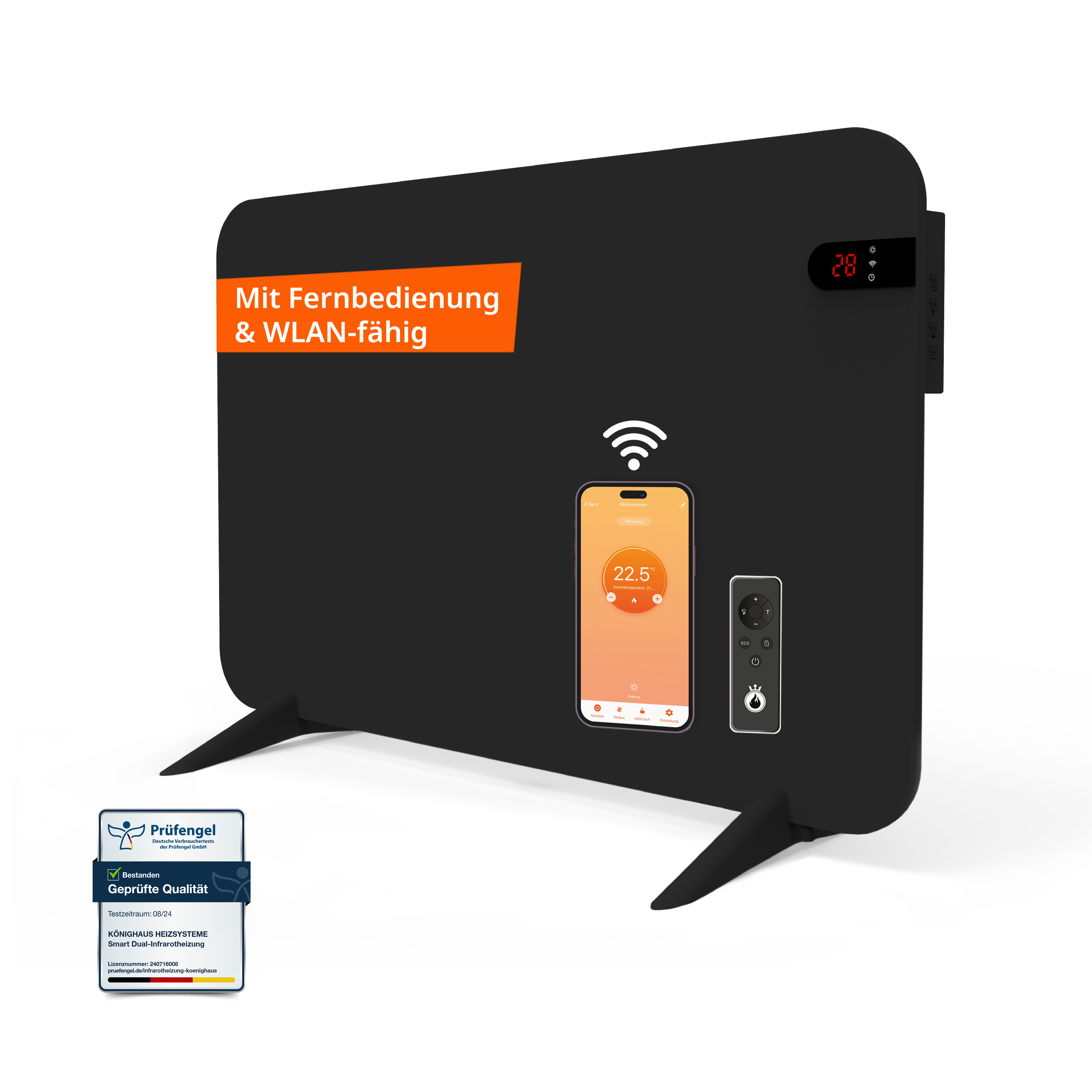 Könighaus Infrarot Infrarotheizung 450W Smart Dual-Infrarotheizung mit Display - Stand/Wandmontage + Fernbedienungvielseitiges Heizpaneel
