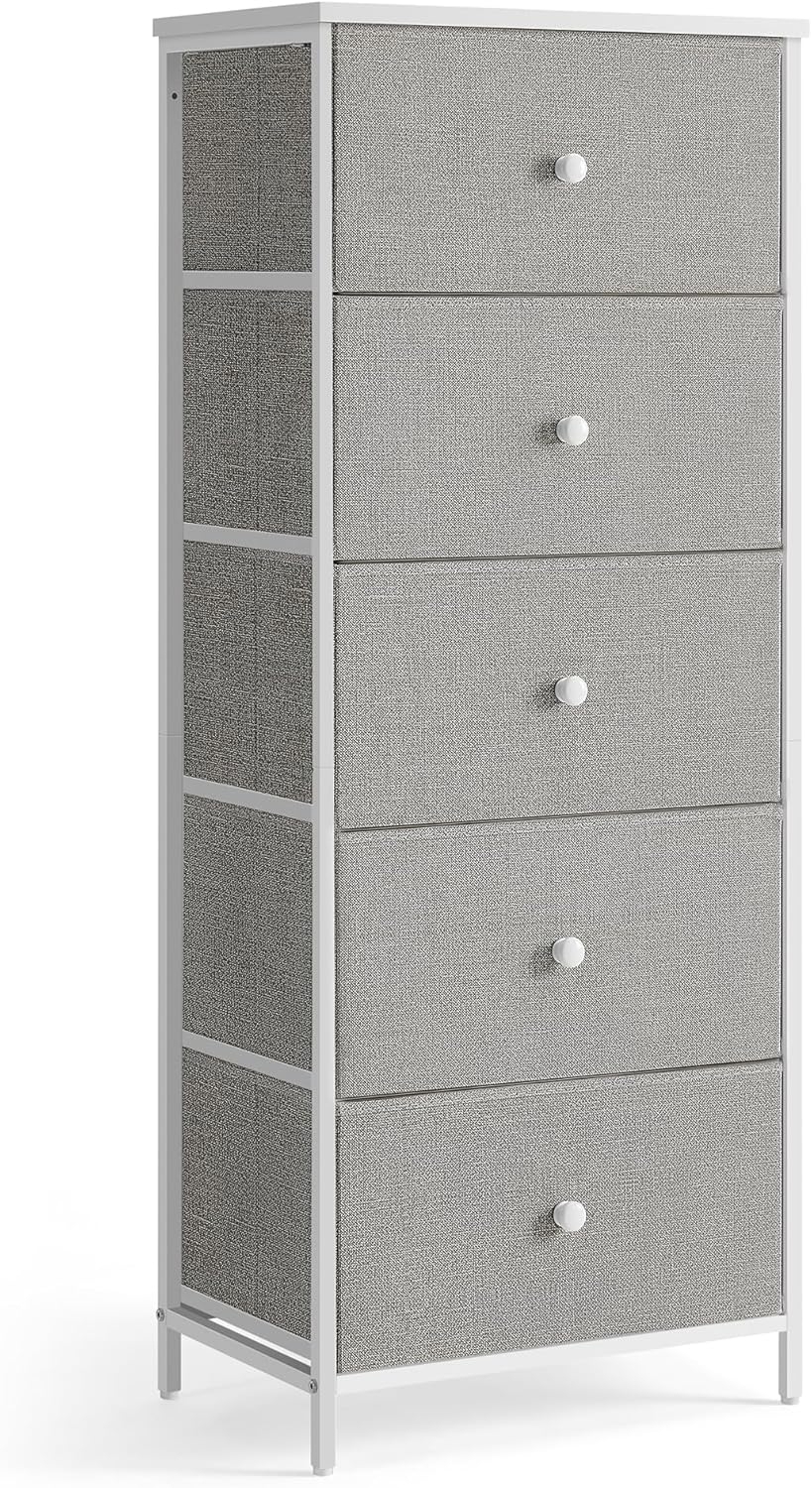 | Name | Songmics Kommode, Aufbewahrungsschrank mit 5 Stoff-Schubladen, Metallrahmen, hoch und schmal, taubengrau-cremeweiß LTSDE315G01 |