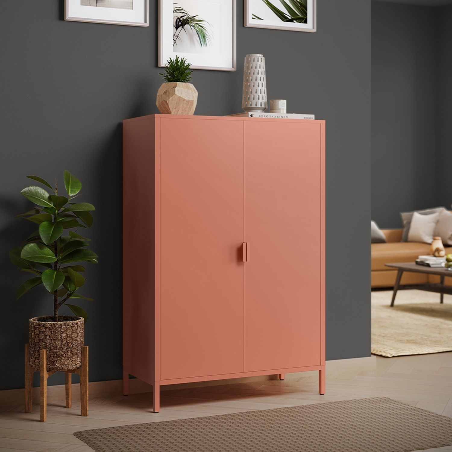 **Praktische Ordnung mit klarer Linie** Die Metallkommode *Ituri* bietet eine stilvolle und funktionale Lösung für alle, die Wert auf robuste Materialien und durchdachten Stauraum legen. Mit ihren drei großzügigen Fächern hinter zwei großen Doppeltüren eignet sie sich ideal für das Schlafzimmer, den Flur oder das Büro. Ob Kleidung, Unterlagen oder Alltagsgegenstände – alles findet hier seinen festen Platz. **Langlebiges Metallgehäuse** Der Korpus der Kommode besteht vollständig aus Stahl mit einer widerstandsfähigen Pulverbeschichtung. Dieses Material überzeugt durch seine hohe Belastbarkeit, einfache Reinigung und eine ausgezeichnete Alltagstauglichkeit – perfekt für einen langlebigen Einsatz im Haushalt. **Vielseitige Nutzungsmöglichkeiten** Ob als Aufbewahrungsschrank im Eingangsbereich, als stilvolle Kommode im Wohnzimmer oder als funktionaler Stauraum im Homeoffice: Die Metallkommode *Ituri* fügt sich mit ihrem schlichten Design mühelos in verschiedenste Raumkonzepte ein und sorgt überall für Ordnung. **Stabilität auf jedem Untergrund** Dank höhenverstellbarer Füße steht die Kommode auch auf unebenen Böden zuverlässig und sicher. Zusätzlich sorgen integrierte Magnete an den Doppeltüren für ein leises, sicheres Schließen – ganz ohne Klappern. **Schneller Aufbau ohne Aufwand** Die gut strukturierte Montageanleitung ermöglicht einen unkomplizierten Aufbau der Kommode. Auch ohne handwerkliche Erfahrung lässt sich das Möbelstück zügig und stabil montieren – für mehr Ordnung in kürzester Zeit. **Produktdetails:** - **Maße:** 120 x 38 x 80 cm (H x T x B) - **Material:** Stahl mit Pulverbeschichtung - **Farbe:** Terrakotta - **Fächer:** 3 Innenfächer hinter 2 großen Doppeltüren - **Belastbarkeit:** 15 kg pro Fach, 20 kg obere Ablagefläche - **Ausstattung:** Höhenverstellbare Füße, Magnetverschluss, pflegeleichte Oberfläche - **Montage:** Einfache und schnelle Selbstmontage