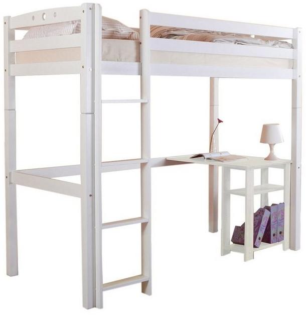 Das Ticaa Hochschläfer Tolly Buche Weiß ist ein extra hohes Bett aus massiver Buche, das speziell für Kinder konzipiert wurde. Die beidseitig montierbare Leiter passt sich optimal an die Gegebenheiten im Kinderzimmer an. Ein Rundum-Schutz sorgt für Sicherheit, während das Bett bei Bedarf einfach in ein normales Einzelbett umgebaut werden kann. **Highlights** - Als normal hohes Einzelbett stellbar - Stabile Pfosten - Extra hohes Bett - Fallschutz - Leiter beidseitig montierbar **Produkteigenschaften** - Abmessungen: Tiefe: 208 cm, Breite: 102 cm, Höhe: 180 cm, Pfostenstärke: 6 x 6 cm, Max. Matratzenhöhe: 16-18 cm, Höhe unter der Liegefläche: 138 cm - Liegefläche: 90 x 200 cm, Außenmaß: 102 x 208 cm - Material: Buche Massivholz **Lieferumfang** - Hochbett inkl. Leiter - Ohne Schreibtisch, Stuhl und Dekoration - Rollrost und Matratze separat erhältlich