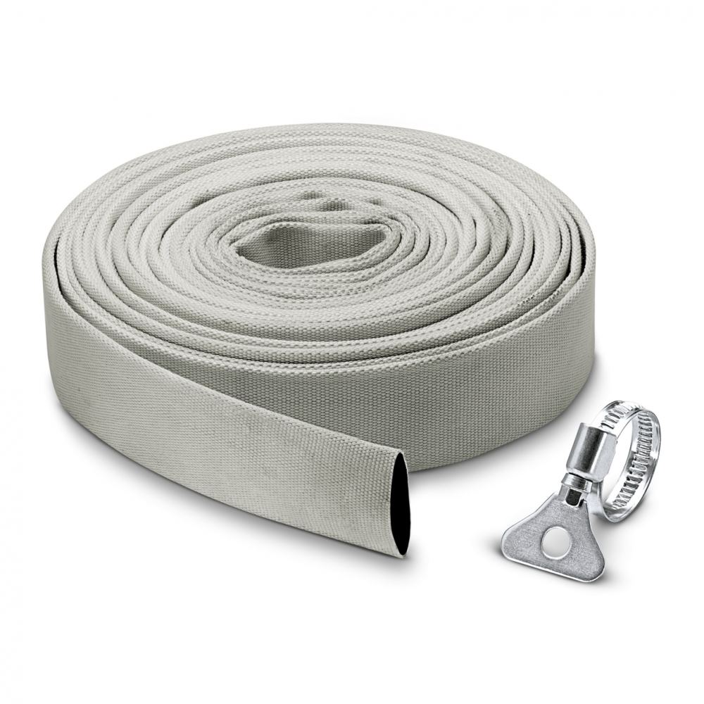 Das Gewebeschlauchset 1 von Kärcher bietet eine hochwertige Qualität und besteht aus robustem Material. Der Schlauch weist im Vergleich zu einem herkömmlichen 3/4 Zoll Schlauch einen größeren Durchmesser auf, was für einen höheren Durchfluss sorgt. Auch bei leichten Bögen mit einem Radius von rund 5 m funktioniert das Set einwandfrei.