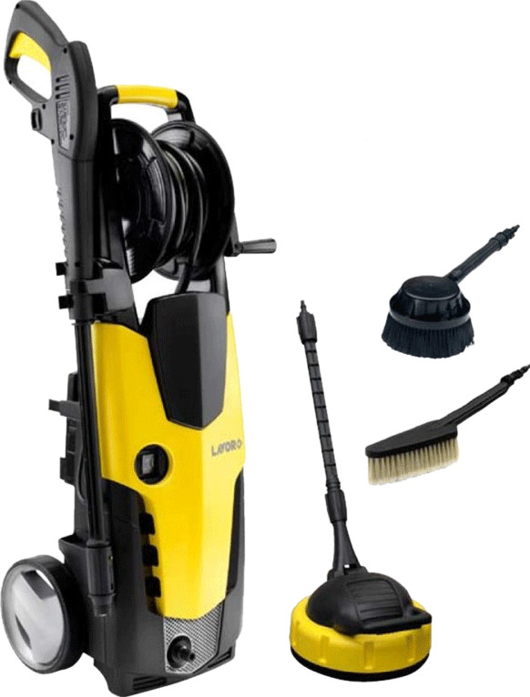 | Lieferumfang | Hochdruckreiniger, Kabel-und Zubehörhalterung, Schlauchtrommel, 5 Meter Kabel, 6 Meter Hochdruckschlauch, Lanze mit austauschbaren Lanzenköpfen |