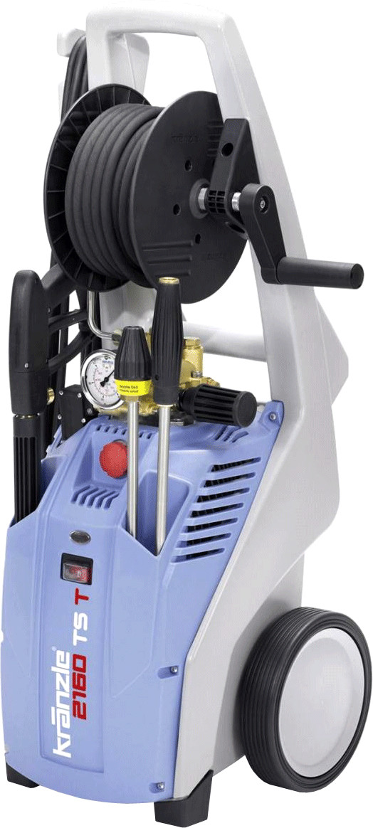 Der Kränzle K2160TST ist äußerst kraftvoll und die Handhabung erweist sich als sehr komfortabel; er ist hervorragend geeignet, um große Flächen zu bearbeiten oder schwere Verschmutzungen zu beseitigen.