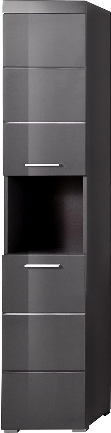 Details: Badezimmer Hochschrank Amanda GE11779-35 Front MDF Hochglanz grau tiefgezogen, ohne Umleimerkanten Korpus grau Dekor B/H/T ca.: 37/190/31 cm 2 Türen Türen links oder rechts zu befestigen 2 Einlegeböden / 4 geschlossene Fächer Einlegeböden höhenverstellbar 1 offenes Fach Qualität: Hochwertige Badmöbel in modernem Design Front in stabilem MDF, Hochglanz grau tiefgezogen in Kassetten-Optik, dadurch keine Umleimerkanten und besserer Schutz gegen Feuchtigkeit Korpus grau, strapazierfähige Melaminbeschichtung Türen links oder rechts öffnend Einlegeböden höhenverstellbar Griffleisten in Aluoptik Metallscharniere Pflegeleicht durch glatte Oberflächen, einfach feucht abwischen Viel Stauraum bei wenig Platzbedarf min. 70% FSC®-zertifizierter Holzwerkstoff, aus kontrolliert nachhaltiger Forstwirtschaft Das Badmöbelprogramm Amanda bietet eine Vielzahl von Einzelmöbeln mit verschiedenen Stell -und Kombinationsmöglichkeiten Lieferumfang: Telefonische Terminabsprache Zerlegt/Selbstmontage, inkl. bebilderte Aufbauanleitung Montage- und Befestigungsmaterial Dekoration, Waschbecken, Beimöbel, Elektrogeräte und Armaturen sind nicht enthalten