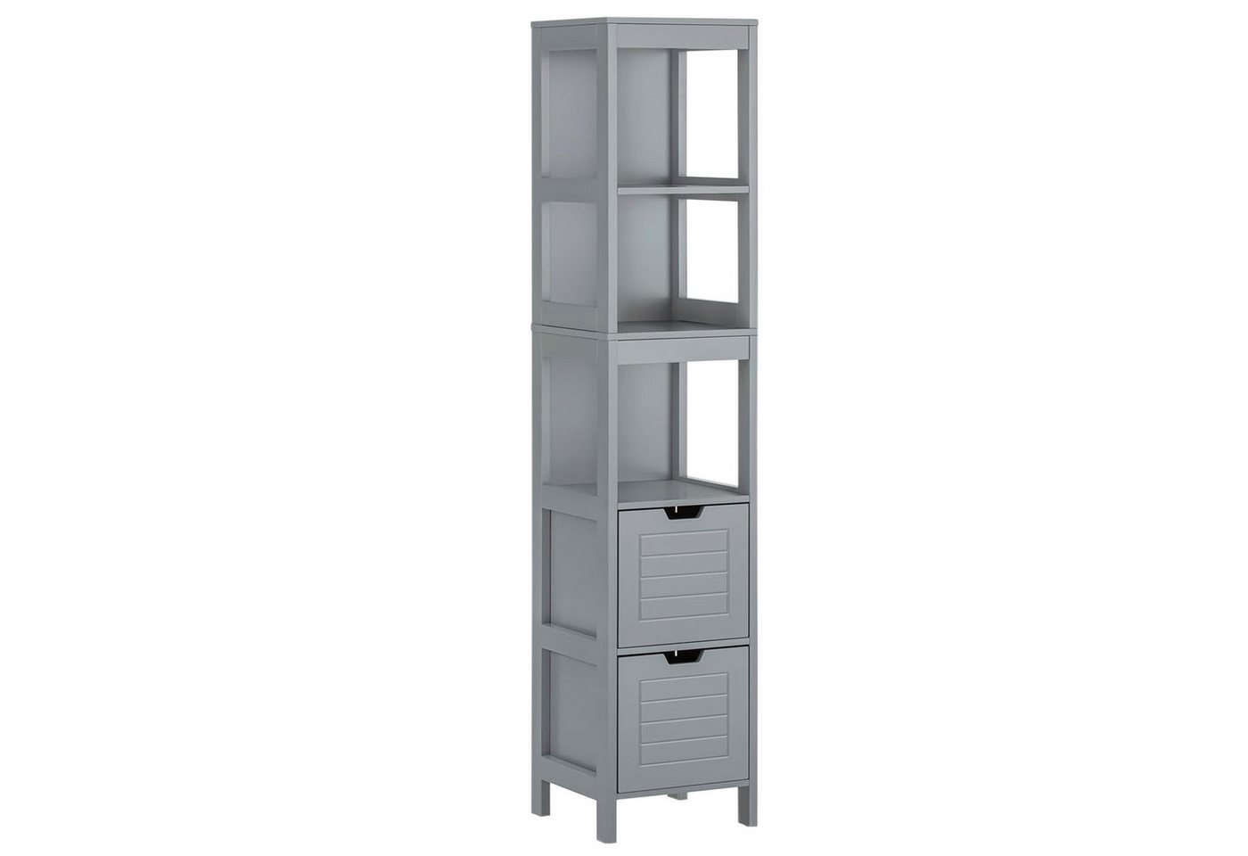 Unser Badschrank Hochschrank Badregal Hampton in Grau ist die ideale Lösung für Ordnung und Stil in Ihrem Badezimmer. Aus hochwertigem MDF gefertigt, bietet er mit zwei Schubladen und offenen Regalen ausreichend Stauraum für Ihre Badutensilien. Das pflegeleichte Material und das moderne Design im Hampton-Stil machen diesen Schrank zu einem echten Blickfang. Die Montage ist dank der beiliegenden Anleitung einfach und schnell. **Highlights** - Hochwertiges MDF-Material für Langlebigkeit - Zwei Schubladen für blickdichten Stauraum - Offene Regale für einfachen Zugriff auf Badutensilien - Pflegeleichtes Material für einfache Reinigung - Modernes Design im Hampton-Stil **Produkteigenschaften** - Abmessungen: 30 x 30 x 144 cm - Farbe: Grau - Stil: Hampton - Montageanleitung inklusive für einfache Installation **Lieferumfang** - Badschrank Hochschrank Badregal Hampton - Montageanleitung - Ausschluss von weiteren Zubehörteilen