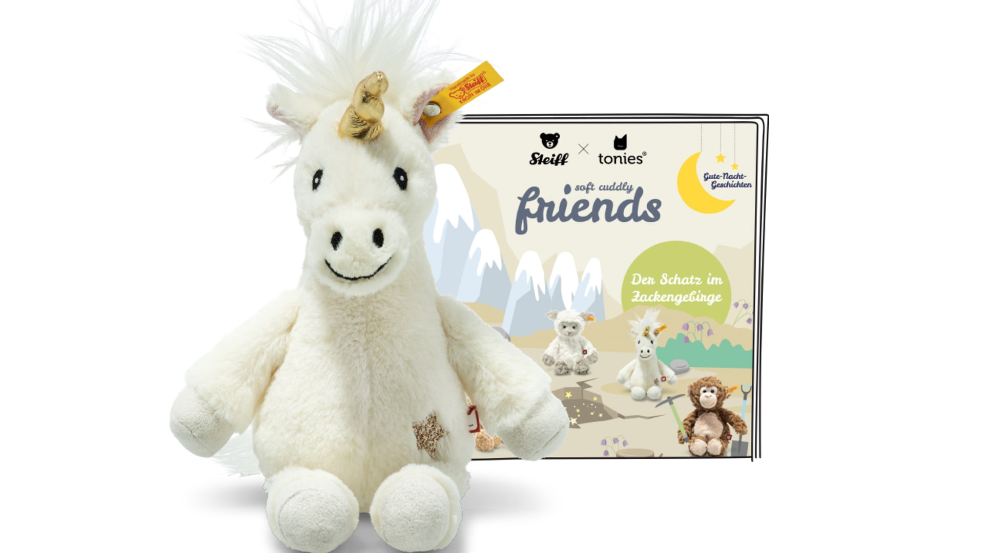 | Name | Tonies Steiff Soft Cuddly Friends mit Hörspiel 'Unica Einhorn', Hörfigur mit ca. 74 Minuten Spielzeit, ab 3 Jahren |