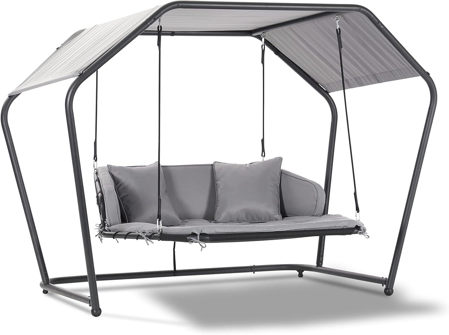 | Name | Leco 'Laureen' Hollywoodschaukel mit Polsterauflagen, Kissen & Sonnendach, grau, 264 x 185 x 195 cm |