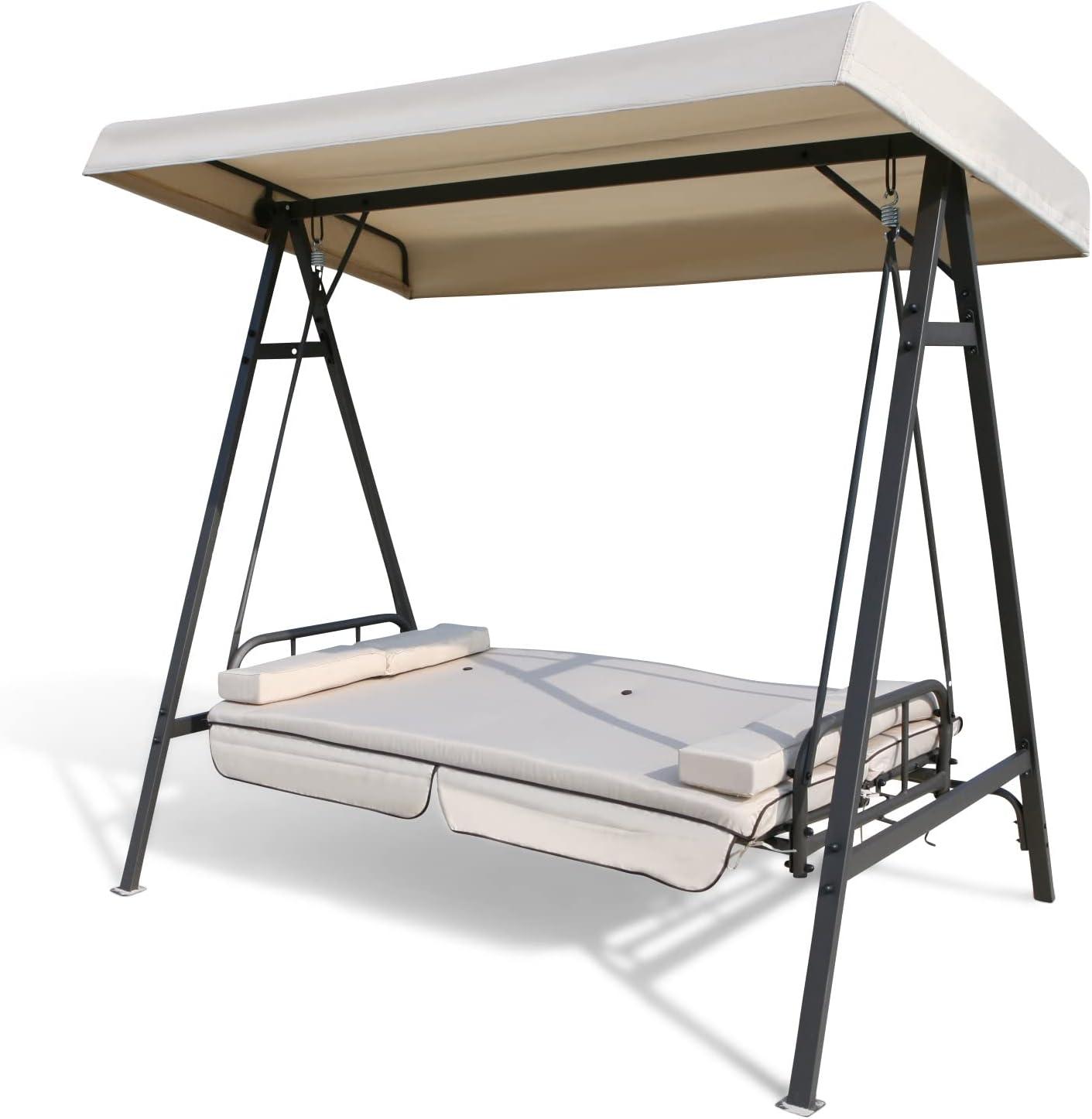 Elegant und komfortabel - die neue Schaukel Amalfi. Design mit Komfort. Details ca.: * Aufstellmaße LxBxH 210x140x196cm * Sitzlänge / Liegenlänge 174cm * Sitztiefe 50cm * Sitzhöhe 50cm * Liegefläche Bett LxB 174x100cm * Sitzhöhe 55cm mit Auflage, Auflage 9cm dick * Material Gestell Stahl pulverbeschichtet 7022 * Material Dach, Auflage und Kissen 100% Polyester, komfortabel gefüllt Klare Linie vom Dach bis zum Gestell. Beste Materialien mit extra dicker Auflage. Mit wenigen Griffen lässt sich die Schaukel zum Bett umfunktionieren. Mit 2 Haken können Sie die Liegefläche fixieren. Die beiden mitgelieferten Kissen werden einfach in Sitzposition zusammengeklappt und bieten so eine komfortable Armauflage. In der Bettfunktion werden sie einfach aufgeklappt und sind als langes bequemes Kopfkissen zu nutzen. Das Dach kann leicht über die beiden Verstellschrauben in eine schattenspendende Position gebracht werden. Die Schaukel wird zerlegt zur Selbstmontage geliefert. **Speditionsware: Bitte geben Sie bei Bestellung Ihre Rufnummer mit an, damit wir eine Terminabsprache für die Zustellung der Ware treffen können.**