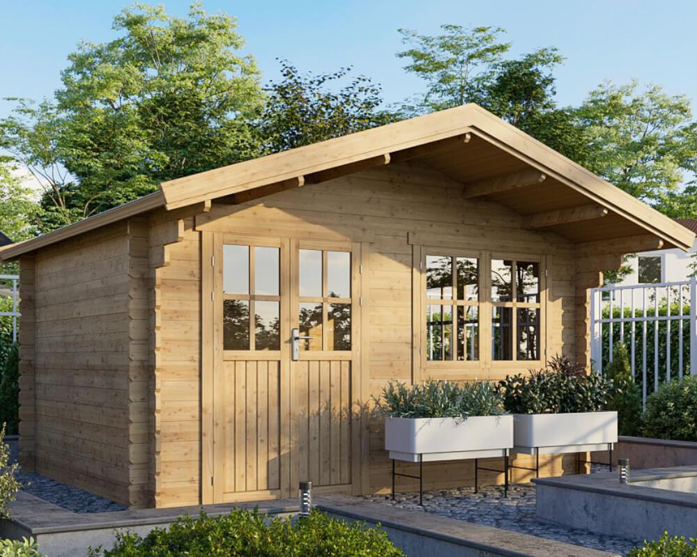 Das McGarden Gartenhaus GartenStar bietet Ihnen mit seinen Außenmaßen von 400 x 300 cm (B x T) und einer Nutzfläche von ca. 10,18 m² ausreichend Platz für Ihre Gartenutensilien. Hergestellt aus kammergetrockneter nordischer Fichte, überzeugt es durch eine Wandstärke von 35 mm und eine Gesamthöhe von 263,2 cm. Die naturbelassene Farbe und die Möglichkeit des spiegelverkehrten Aufbaus machen es zu einer flexiblen Lösung für Ihren Garten. **Highlights** - Außenmaß: 400 x 300 cm (B x T) für großzügigen Platz - Wandstärke: 35 mm für hohe Stabilität - Gesamthöhe: 263,2 cm für komfortables Stehen - Nutzfläche: ca. 10,18 m² für vielseitige Nutzung - Material: Kammergetrocknete nordische Fichte für Langlebigkeit **Produkteigenschaften** - Sockelmaß: 380 x 280 cm - Innenmaß: 373 x 237,2 cm - Dachüberstand: ca. 80 cm - Seitenwandhöhe: ca. 200 cm - Durchgangshöhe Tür: ca. 175 cm - Umbauter Raum: ca. 22,5 m³ - Farbe: naturbelassen **Lieferumfang** - 1 Packstück - Packmaß: 400 x 115 x 50 cm - Gewicht: ca. 810 kg - Anlieferung mit Sattelzug (40 Tonner) und Stapler