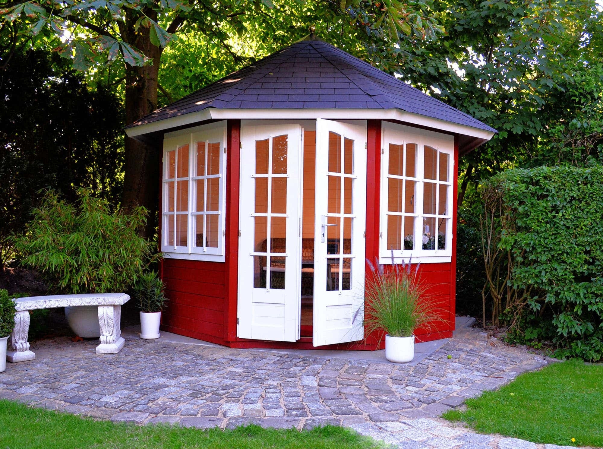 | Lieferumfang | 1x Gartenpavillon, 1x Tür, 2x Fenster, 1x Massivholzfußboden, 1x Holztürschwelle, 1x Zylinderschloss, 1x Drückergarnitur, 1x Montagematerial, 1x Montageplan, 1x vormontierte Wandelemente, 1x vormontierte Dachelemente |