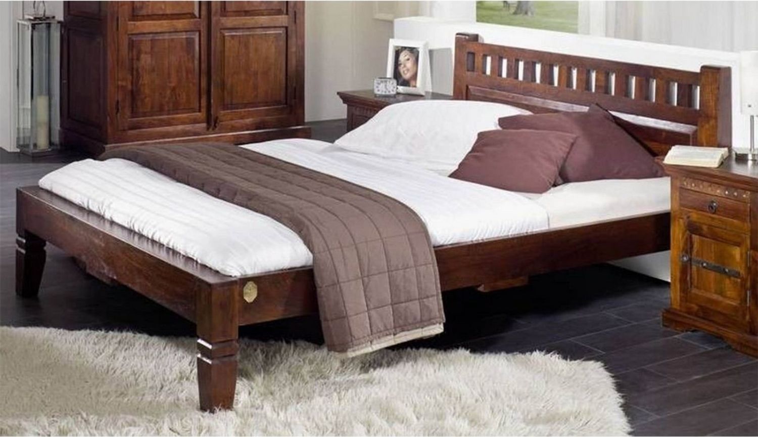 Das Bett Akazie OXFORD in der Größe 140 x 200 x 90 cm vereint stilvolles Design und Funktionalität. Gefertigt aus vollmassiver Akazie und in einem eleganten dunkelbraunen Farbton lackiert, bietet es eine sichtbare Holzmaserung und eine komfortable Anlehnfläche. Die stabile Rahmenkonstruktion sorgt für Langlebigkeit, während die dekorativen Details das Gesamtbild abrunden. **Highlights** - Vollmassive Akazie für hohe Stabilität und Langlebigkeit - Dunkelbraune Lackierung schützt die Oberfläche und erleichtert die Pflege - Hohes Kopfteil mit Aussparungen für eine komfortable Anlehnfläche - Füße mit Drechseldetails für ein ansprechendes Design - Pflegeleicht durch regelmäßiges Abwischen mit einem trockenen Tuch **Produkteigenschaften** - Maße (HxBxT): 90 x 140 x 200 cm - Sichtbare Holzmaserung mit natürlichen Merkmalen - Zerlegt geliefert, zur Selbstmontage vorgesehen - Pflegehinweis: Mit trockenem, weichem Tuch abwischen; bei Bedarf leicht feucht reinigen **Lieferumfang** - Bettgestell ohne Matratze, Lattenrost, Dekoration und weitere abgebildete Artikel