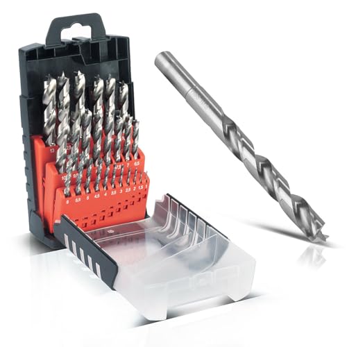 STAHLWERK HSS Holz-Spiralbohrer 25er Set 1-13 mm DIN 338 Holzbohrer | HSS-Bohrer | Bohrer-Satz | Präzisionsgeschliffene Kanten | Zentrierspitze | geschärft | in verschiedenen Farben