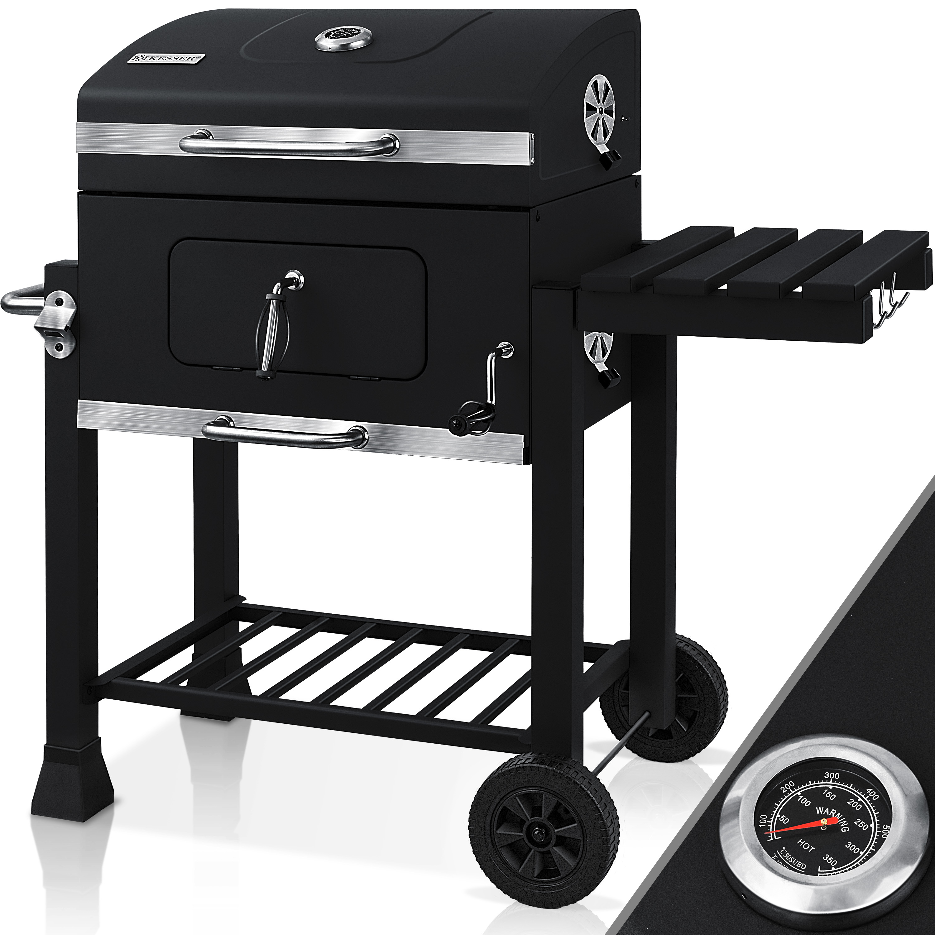 Der Grillwagen XXL Holzkohlegrill mit Deckel von KESSER bietet eine stabile und robuste Verarbeitung, die für eine langanhaltende Nutzung sorgt. Der einfache Aufbau ermöglicht es, schnell mit dem Grillen zu beginnen. Die großzügige Grill- und Warmhaltefläche sowie die gute Qualität des Materials garantieren ein optimales Grillerlebnis. Zudem ist der Grill gebrauchsfreundlich gestaltet und leicht zu reinigen.