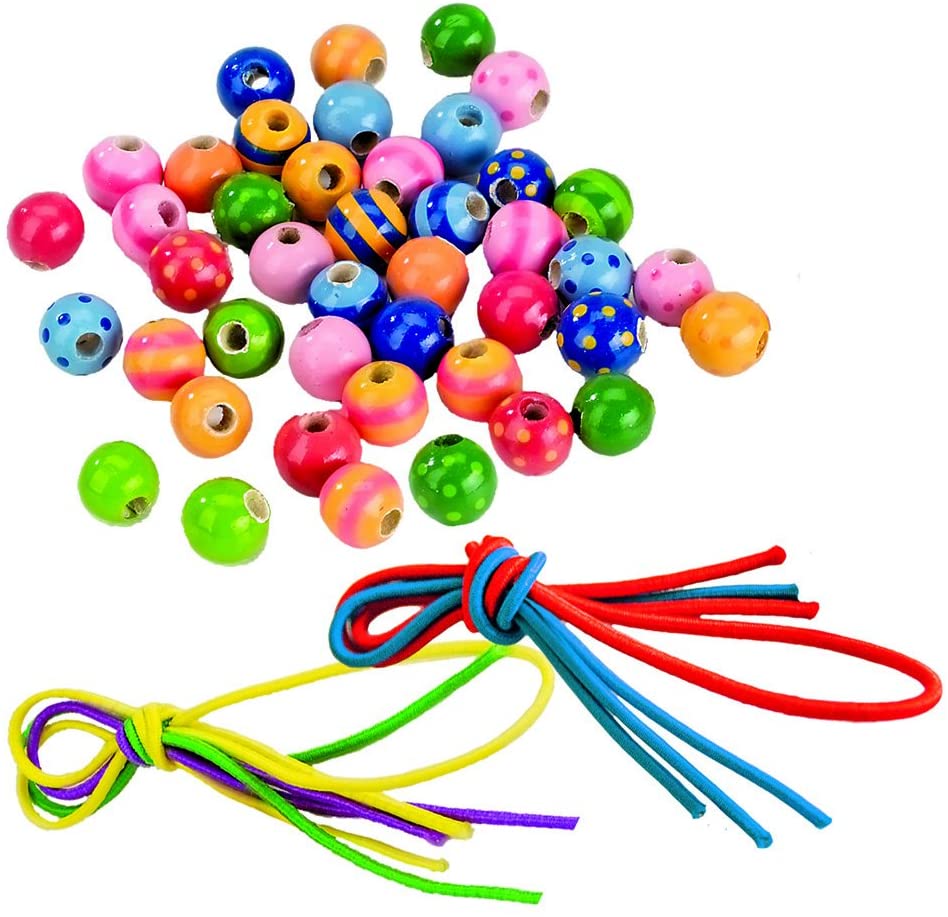 Fördert die Feinmotorik und Kreativität durch 44 bunte Holzperlen und 3 Bänder für vielseitige Bastelprojekte.