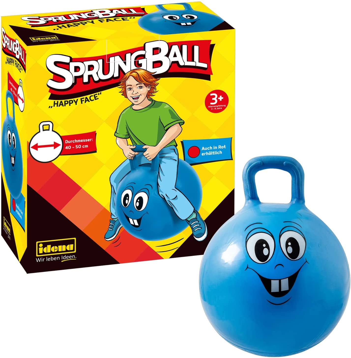 | Name | Idena - Sprungball Happy Face in blau, Durchmesser ca. 45 - 50 cm, belastbar bis 50 kg |