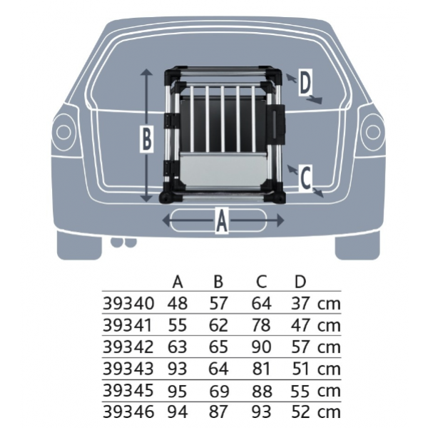 Die stabile Aluminiumkonstruktion sorgt für maximale Sicherheit und Langlebigkeit beim Transport größerer Hunderassen.
