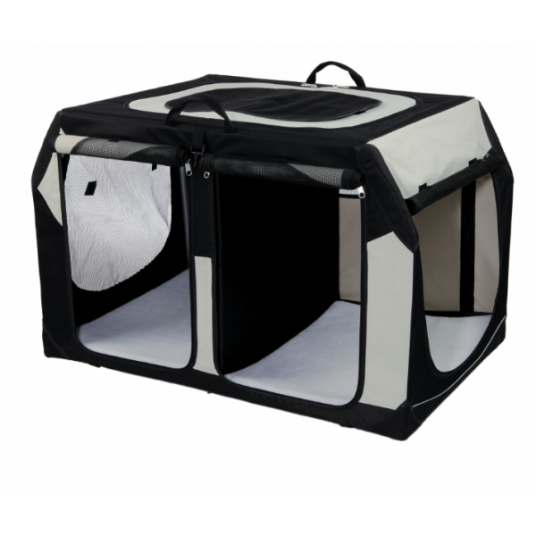 Die Transportbox Vario Double S von Trixie bietet die Möglichkeit, zwei Hunde sicher und komfortabel zu transportieren. Mit den Maßen 91 × 60 × 61-57 cm ist sie ideal für verschiedene Hunderassen geeignet. Dank ihres einfachen Aufbaus und ihrer stabilen Konstruktion ist die Box sowohl im Alltag als auch auf Reisen vielseitig einsetzbar.