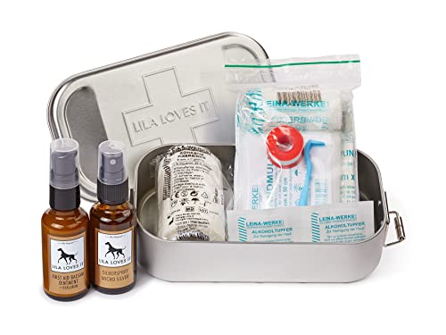 Erste-Hilfe-Set für Hunde - Verbandskasten mit First Aid Balsam und SilbersprayVerbandsmaterial, Wundkompresse und Heftpflaster-Rolle, FIRST AID BOX von LILA LOVES IT