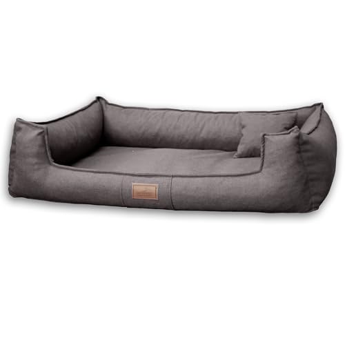 tierlando® Orthopädisches Hundebett Goofy Couture | Samtweich | Eleganter Möbelstoff | Eyecatcher | ~ inkl. Matratzenschoner | Graphit | G3-A-02