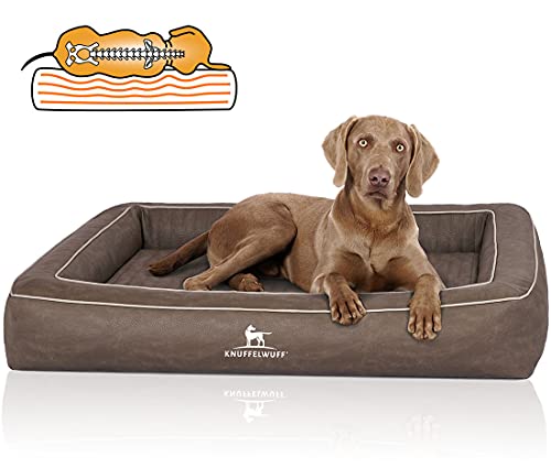 Knuffelwuff Orthopädisches Hundebett aus Laser gestepptem Kunstleder Montego M-L 85 x 65cm Braungrau