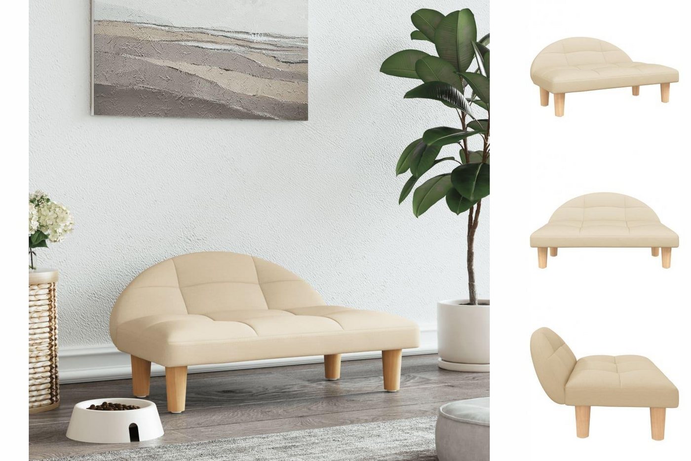 vidaXL Hundekorb Hundebett Creme 70x52x30 cm Stoff Körbchen Hundesofa mit Massivholzrahmen und weicher Polsterung