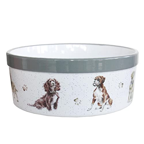 Wrendale Designs Steingut Hundenapf ca. 20,5cm D 1800ml Royal Worcester Schüssel mit Rasse-Hunde Portraits von der britischen Künstlerin Hannah Dale fürs Füttern & als Geschenk