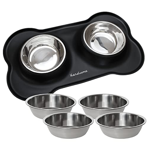 KaraLuna Napfunterlage aus Silikon mit Edelstahl Futternapf I Für Katzen & Hunde I Fressnapf Katze Futternapf Cat Bowl Hundenapf Katzenfressnapf Näpfe Station Napf Unterlage (400ml, Schwarz)