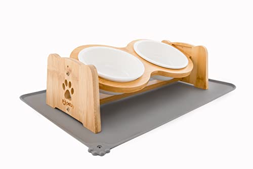 Höhenverstellbare Futterstation aus Bambus, die die Haltung von kleinen Hunden und Katzen verbessert.