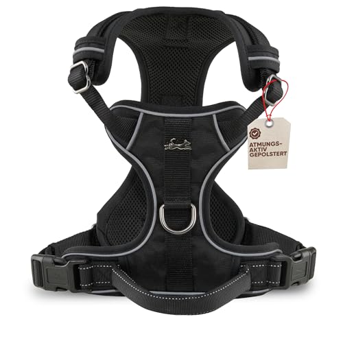 FREUDENTIER® Hundegeschirr mit atmungsaktiver Mesh-Polsterung - Höchster Komfort & bombenfester Sitz - Mit Anti-Zieh-Frontring - Brustgeschirr für großemittelgroße und kleine Hunde (Black, L)