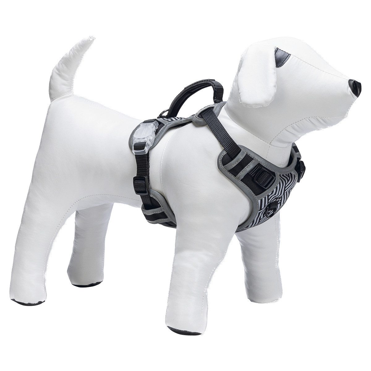 Beeztees Hunde-Geschirr Y-Geschirr Parinca Safety Gear LED Nylon schwarzreflektierend, USB-aufladbar, Y-förmige Brustplatte
