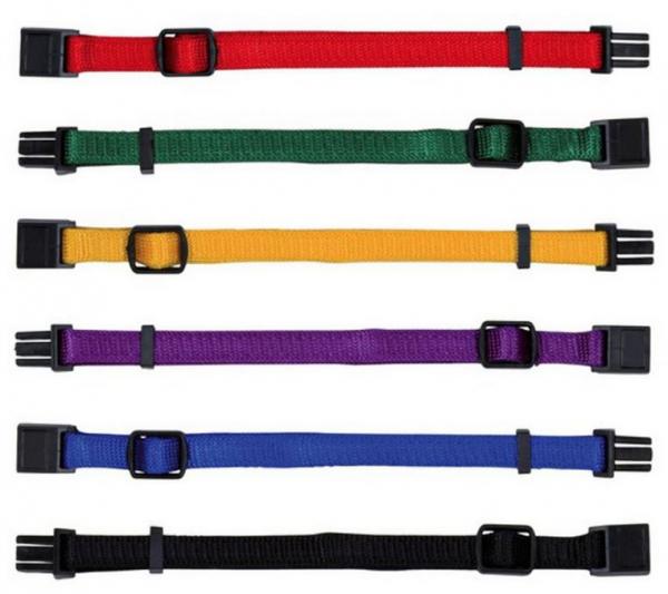 Ermöglicht eine einfache Unterscheidung der Welpen durch kräftige Farben und verstellbare Gurtbänder.