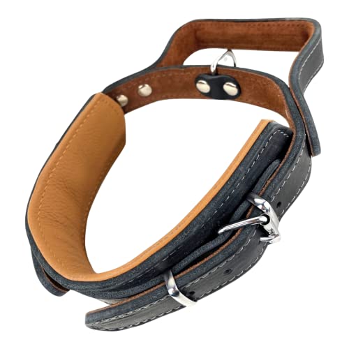 Hundehalsband mit GriffDickes qualitativ hochwertiges Leder 40cm bis 55cm x 60mm - Erziehungshalsband - Taktisches Halsband - bis zu 15cm verstellbar - weich gepolstert