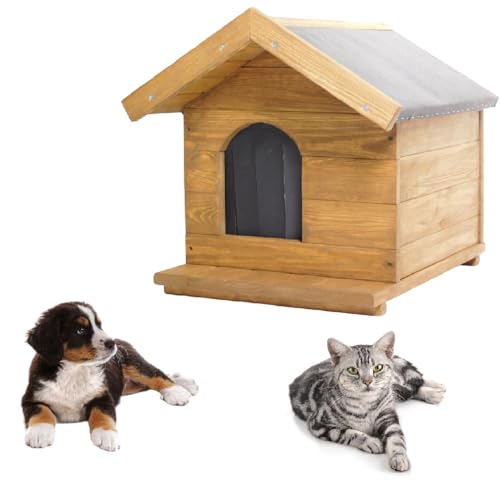 QLS Hundehütte Hundehaus Hundehöhle 50 x 45 x 53 cm Katzenhaus Isoliert Tierhütte Wetterfest OutdoorTeakholzfarbe