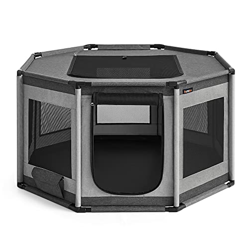 Feandrea Welpenauslauf Oxford-Gewebeachteckiger Welpenlaufstall L, 112 x 112 x 62 cm, PVC-Rahmen, atmungsaktives Netz, Tasche, Taubengrau-schiefergrau