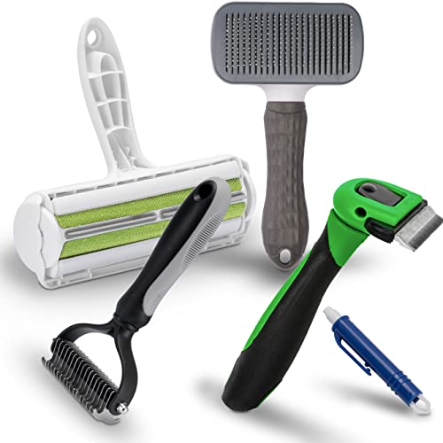 FinoPet 5er Set mit verschiedenen Hundebürsten/KatzenbürstenXL Fusselrolle und Zeckenzange im Aktionsset, Langhaar Kurzhaar Unterwolle Bürsten Tierhaarentferner, Automatische Zeckenentfernung