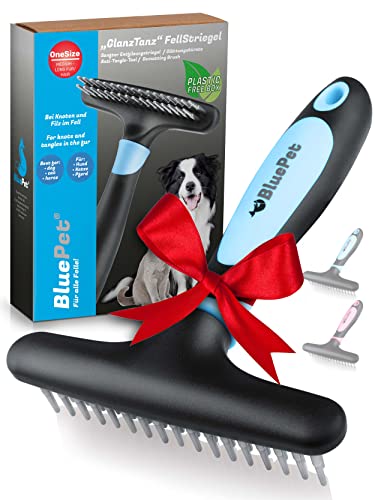 BluePet GlanzTanz Fellentwirrer Entfilzer für Langhaar Hunde und Katzen - Hochwertiger Hundestriegel mit zwei Reihen Pins - Löst Knoten & Verfilzungen - Glättet & Entwirrt das Deckhaar (Blau)