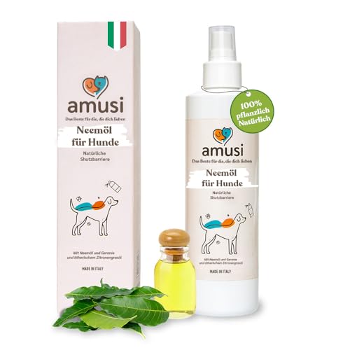• Das Amusi Neemöl-Zeckenspray bietet einen natürlichen Schutz für Hunde, indem es die Haut unattraktiv für Mücken, Flöhe, Zecken und andere Parasiten macht