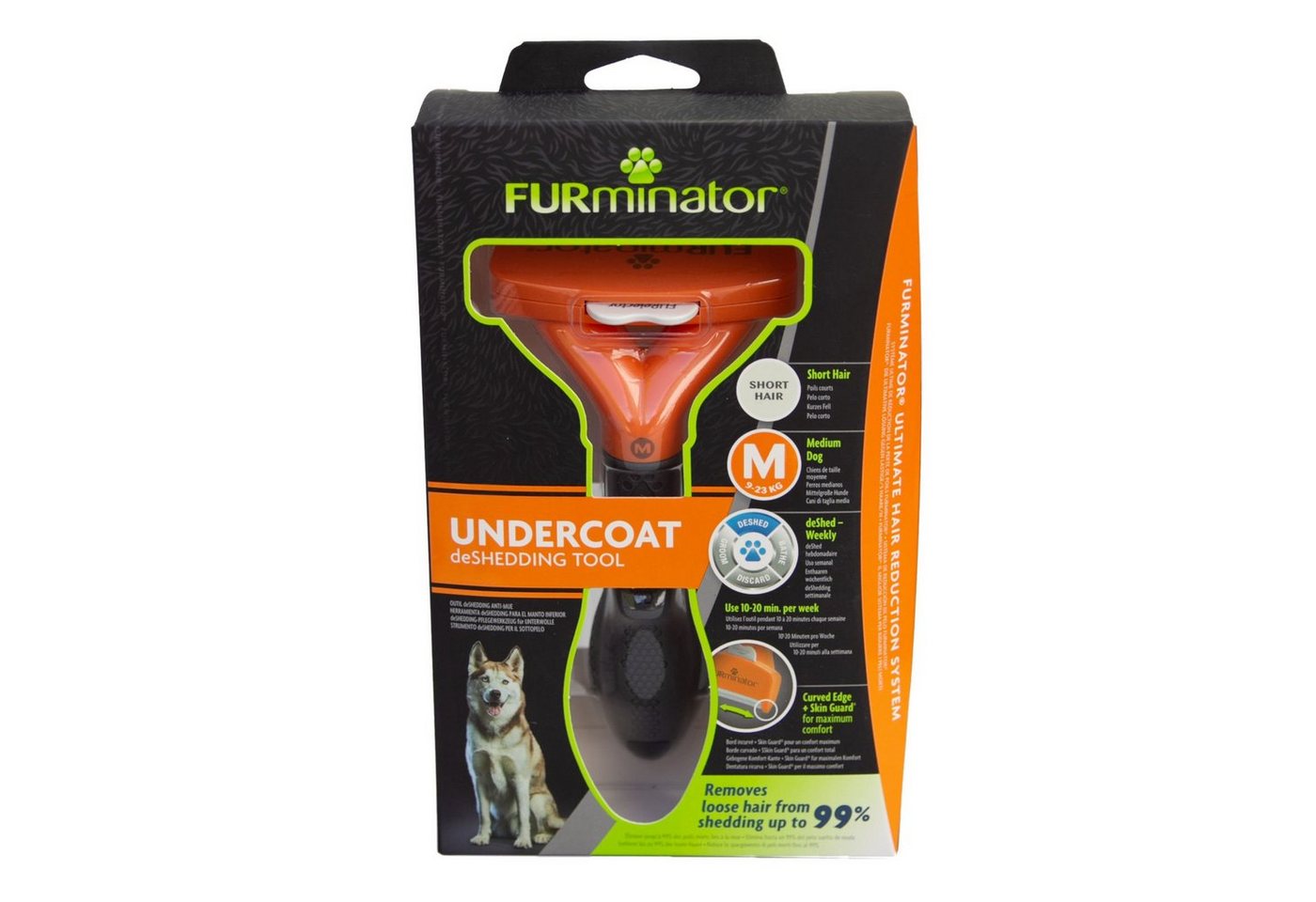 Die FURminator Fellbürste für kurzhaarige mittelgroße Hunde bietet eine gezielte Lösung für Hundebesitzer, die mit dem Haaren ihrer Vierbeiner kämpfen. Mit ihrer deShedding-Edelstahlkante und dem praktischen FURejector-Druckknopf zur Haarentfernung, zielt dieses Pflegewerkzeug darauf ab, den Haarverlust deutlich zu reduzieren und die Fellpflege für Hund und Halter zu erleichtern.