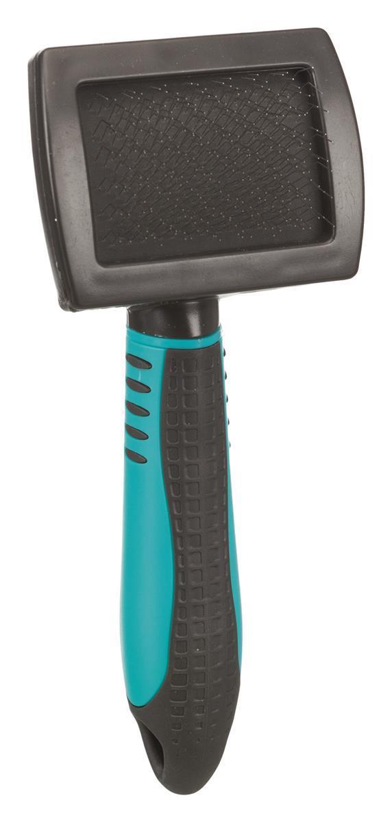 Die Trixie Softbürste für Hunde und Katzen ist eine effektive Bürste, die sowohl lose Haare als auch Unterwolle gründlich entfernt. Sie liegt gut in der Hand und ist für verschiedene Felltypen geeignet. Viele Tiere scheinen das Bürsten zu genießen. Allerdings ist die Bürste nicht selbstreinigend und die harten Borsten können bei unvorsichtiger Anwendung Hautverletzungen verursachen.