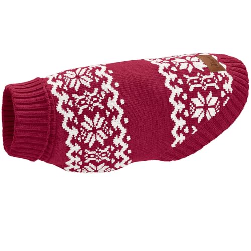 • Ein gemütlicher Hundepullover in Rot mit Norwegermuster für kalte Tage