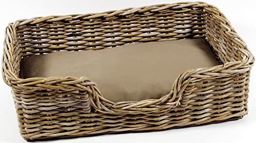 Kobolo Hundekorb Hundesofa aus stabilem Rattan geflochten inkl. Kissen 72x53x20 cm