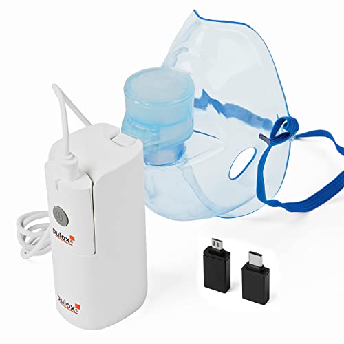 • Mit dem umfangreichen Zubehör, wie einem Adapter für USB-Typ-C und Micro-USB, einer Erwachsenen- und Kindermaske, einem Medikamentenbehälter und einer Batteriebox mit zwei passenden AA+ Batterien, ist es optimal für jede Altersklasse geeignet