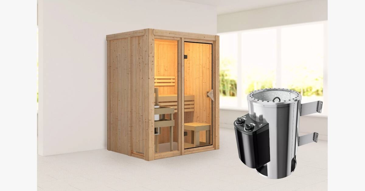Entdecken Sie die Karibu Sauna Avari 1, die Ihnen ein unvergleichliches Wellnesserlebnis bietet. Mit einem Außenmaß von 155 cm Breite, 122 cm Tiefe und 192 cm Höhe bietet diese Sauna großzügigen Platz für Entspannung. Der 3,6 kW Plug&Play Ofen mit integrierter Steuerung ermöglicht eine einfache Montage und eine Temperaturwahl von 50 – 80 °C. Genießen Sie die stilvolle Ausstattung und die wohltuende Wärme, die Ihre Auszeit vom Alltag perfekt macht. **Highlights** - 3,6 kW Plug&Play Saunaofen mit integrierter Steuerung für einfache Bedienung - Bronzierte Ganzglastür für einen attraktiven Einblick - Hochwertige Liegebänke aus Espenholz für maximalen Komfort - Superior Fenster aus bronziertem Isolierglas für angenehme Lichtdurchflutung - Extra hohes Ofenschutzgitter für Ihre Sicherheit **Produkteigenschaften** - Außenmaß: 155 cm Breite, 122 cm Tiefe, 192 cm Höhe - Innenmaße: 139 x 104 cm - Grundfläche: ca. 1,89 m² - 2 Liegebänke: 1 x ca. 52 cm breit, 1 x 27 cm breit - Türvariante: 8 mm bronzierte Ganzglastür, Durchgangsmaß ca. 64 x 162 cm - Einbaumaß: ca. 78 x 187,1 cm - Ofenmaße (BxHxT): 28 x 46 x 46 cm - Kabinengröße: max. 6 m³ - Türrahmen aus Massivholz, rechts und links anschlagbar - Hochwertiger lackierter Türgriff und justierbare Türbeschläge **Lieferumfang** - 2 stabile Liegen aus Massivholz - 3,6 kW Plug&Play Saunaofen mit integrierter Steuerung - Kabel - Ofenschutzgitter - Montageanleitung