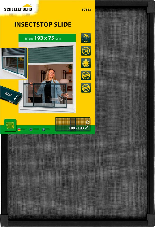 SCHELLENBERG Insektenschutz-Fensterrahmen Fliegengitter Schiebefensterausziehbar bis max. 193 cm, weiß und anthrazit